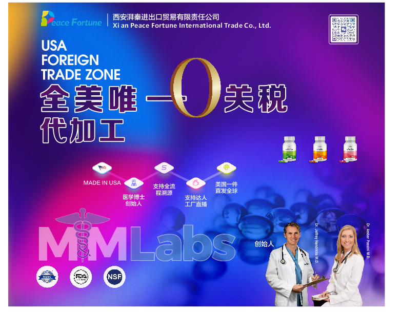 针对全球市场对美国保健品的旺盛需求,湃秦同时与美国唯一的自贸区NSF工厂M&M Labs LLC联合,率先创建全美唯一0关税保健品代工模式,以高效协作和原材料0关税的优势赋能品牌客户,具备供应链稳定和低成本竞争力,助力合作伙伴货通全球!